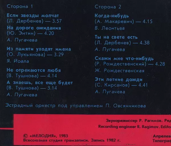 | A2 | Алла Пугачева: На Дороге Ожидания | 4:20 min | |