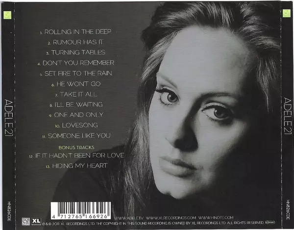 Adele: 21 versie op CD in standaard editie. Deze specifieke uitgave werd uitgebracht bij uitgeverij XL Recordings in samenwerking met High Note Records op 30. augustus 2011.