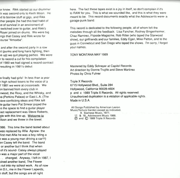 | Uitgever | Triple X Records |