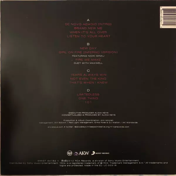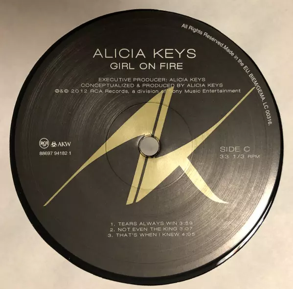 Alicia Keys: Girl On Fire versie op vinyl 2LP in standaard editie. Deze specifieke uitgave werd uitgebracht in Europa bij uitgeverij RCA in samenwerking met AKW op 18. december 2012. Album valt binnen het genre Jazz, Funk / Soul en Contemporary R&B.