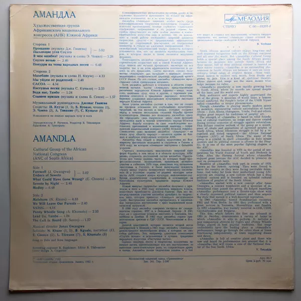 Мелодия 1982 Sovjet-Unie