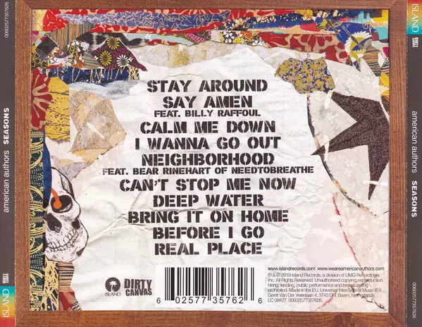 American Authors: Seasons versie op CD in standaard editie. Deze specifieke uitgave werd uitgebracht in Europa bij uitgeverij Island Records in samenwerking met Dirty Canvas (2) op 1. februari 2019. Album valt binnen het genre Rock, Pop en Indie Rock.