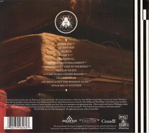 Amy Millan: Honey From The Tombs versie op CD in standaard editie. Deze specifieke uitgave werd uitgebracht in Canada bij uitgeverij Arts & Crafts International op 22. augustus 2006. Album valt binnen het genre Rock en Folk Rock.
