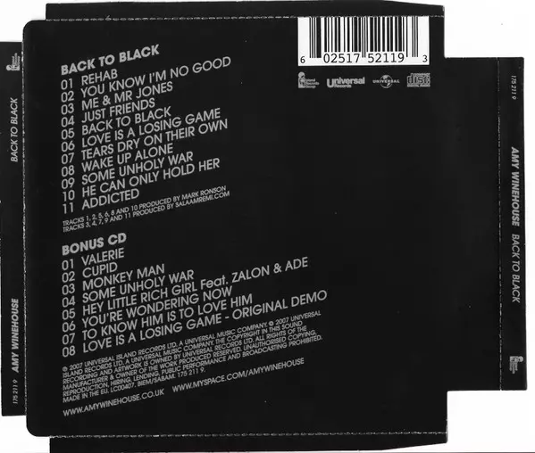 Amy Winehouse: Back To Black DLX versie op 2CD in deluxe editie. Deze specifieke uitgave werd uitgebracht in Verenigd Koninkrijk bij uitgeverij Universal Records in samenwerking met Island Records Group en Universal op 29. december 2017.