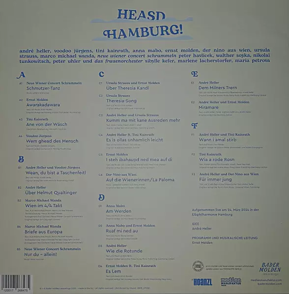 | Artiest | André Heller | Ernst Molden | Voodoo Jürgens | Der Nino Aus Wien | Anna Mabo | Ursula Strauss | Das Frauenorchester | Neue Wiener Concert Schrammeln | Tini Kainrath | Marco Michael Wanda |
