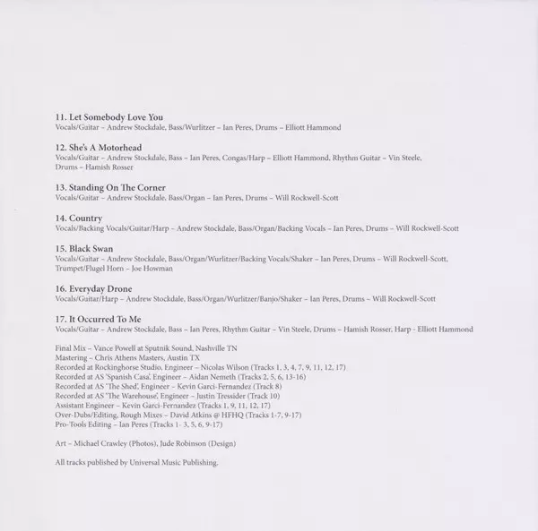 Bass, Organ, Backing Vocals Ian Peres | Drums Will Rockwell-Scott | Vocals, Backing Vocals, Guitar, Harp Andrew Stockdale