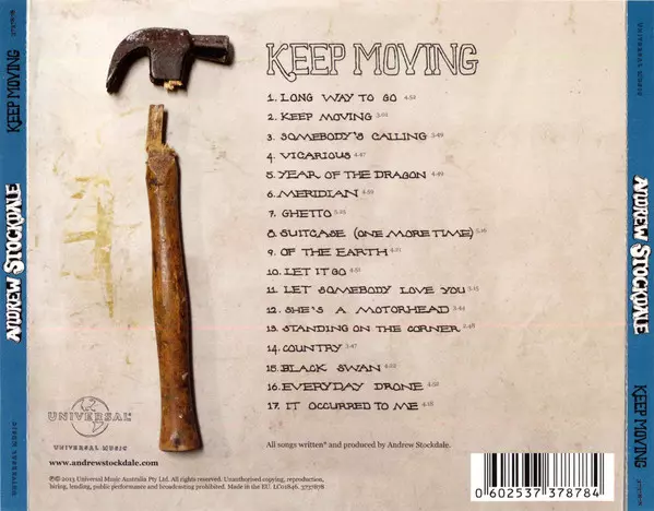 Andrew Stockdale: Keep Moving versie op CD in standaard editie. Deze specifieke uitgave werd uitgebracht in Europa bij uitgeverij Universal op 2. december 2022. Album valt binnen het genre Rock, Blues, Pop Rock, Folk Rock, Blues-Rock, Southern Rock, Classic Rock, Stoner-Rock en Country-Rock.