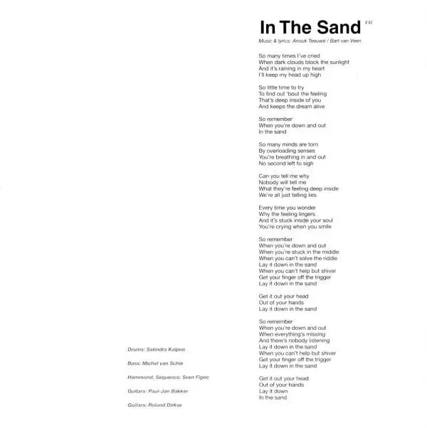 Backing Vocals Bart van Veen, Satindra Kalpoe | Bass Michel van Schie | Drums Satindra Kalpoe | Guitar Lex Bolderdijk, Paul Jan Bakker, Roland Dirkse | Music By, Lyrics By Ricardo Pronk | Sequenced By Frits Rosingh, Satindra Kalpoe