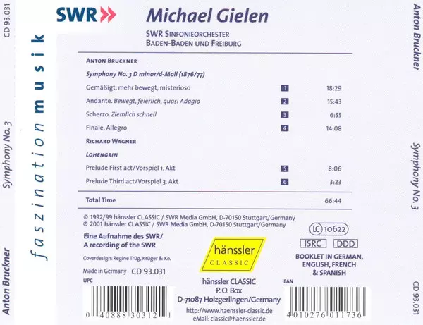 | Artiest | Anton Bruckner | Richard Wagner | SWR Sinfonieorchester Baden-Baden Und Freiburg | Michael Gielen |