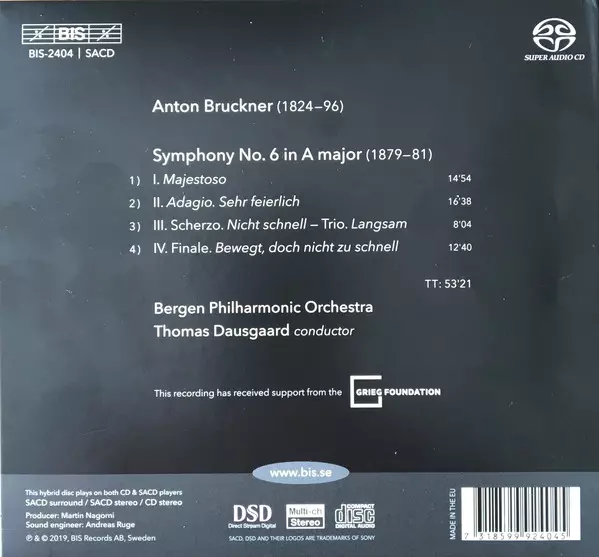| Artiest | Anton Bruckner | Thomas Dausgaard | Bergen Filharmoniske Orkester |