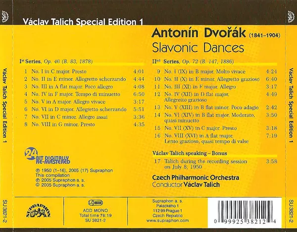 Product information: - The exuberant beginning of a special edition dedicated to the 20th century conducting legend Václav Talich - 16 Slavonic Dances in an extraordinary interpretation by Václav Talich and the Czech Philharmonic Orchestra from a historic Supraphon recording from 1950. - The version that established the performance tradition o...