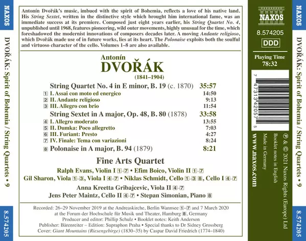 | Artiest | Antonín Dvořák | The Fine Arts Quartet | Stepan Simonian | Gil Sharon | Anna Kreetta Gribajcevic | Jens Peter Maintz | Niklas Schmidt | Ralph Evans | Efim Boico |