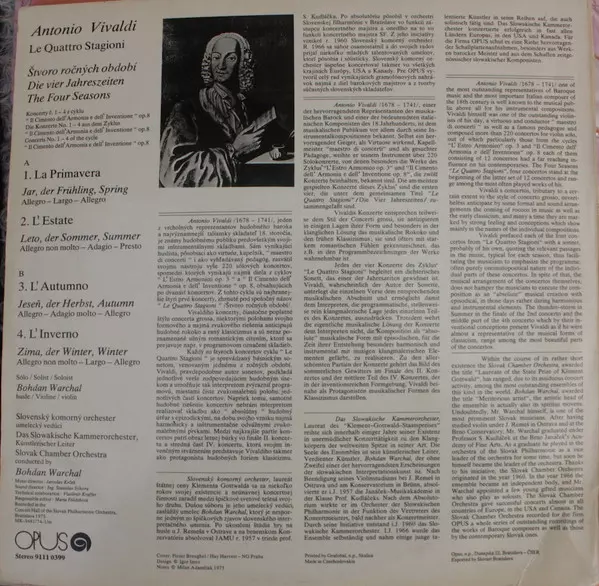 | Meer informatie | 1976 Original pressing (Opus, Czechoslovakia) |