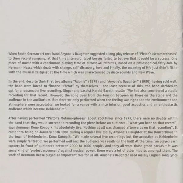 | Meer informatie | Remastered Reissue w/ Bonus Track (Tempus Fugit, 2013) |