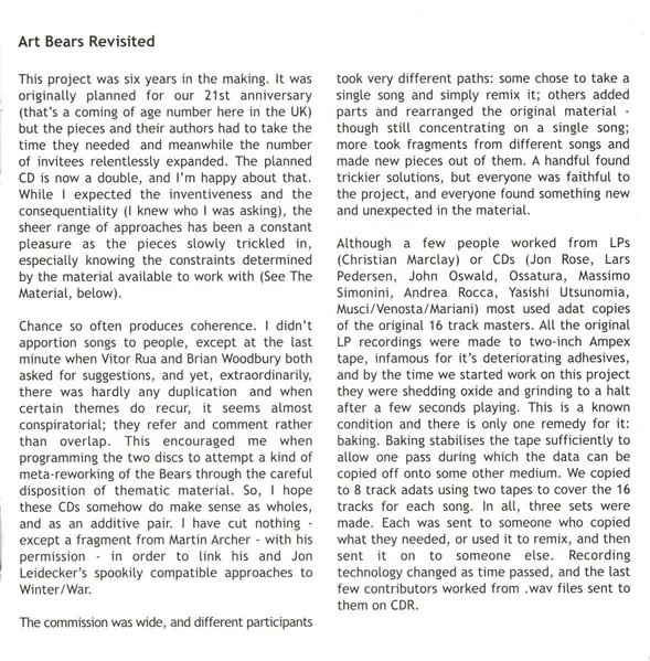 | 1-17 | Art Bears: Collapse | 4:48 min | |