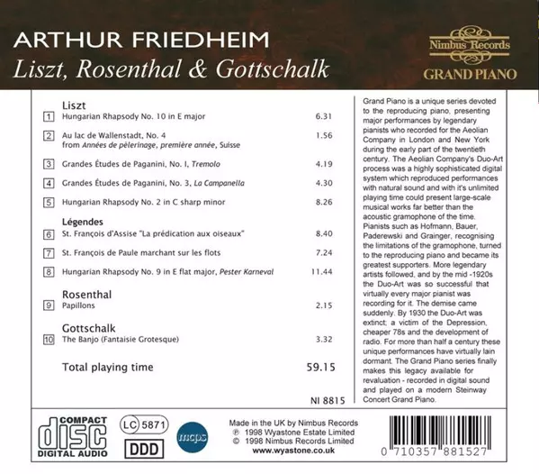 | Artiest | Franz Liszt | Louis Moreau Gottschalk | Moriz Rosenthal | Arthur Friedheim |