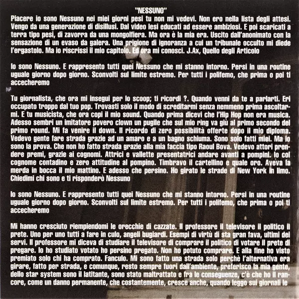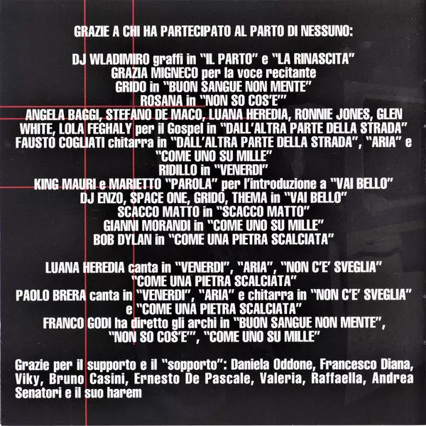 Articolo 31: Nessuno versie op CD in standaard editie. Deze specifieke uitgave werd uitgebracht in Italië bij uitgeverij Ricordi in samenwerking met Best Sound op 13. april 1999. Album valt binnen het genre Hip Hop en Pop-Rap.
