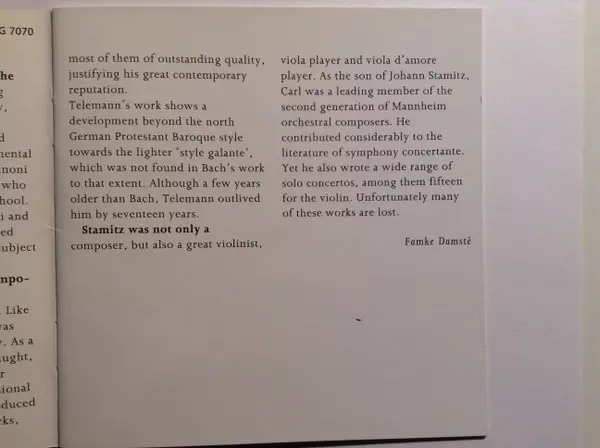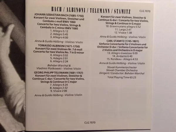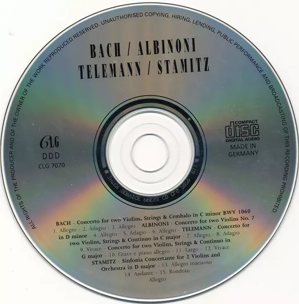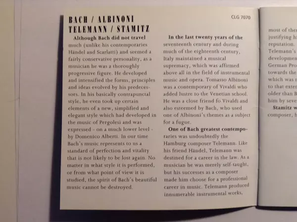 | Artiest | Johann Sebastian Bach | Tomaso Albinoni | Georg Philipp Telemann | Carl Stamitz |