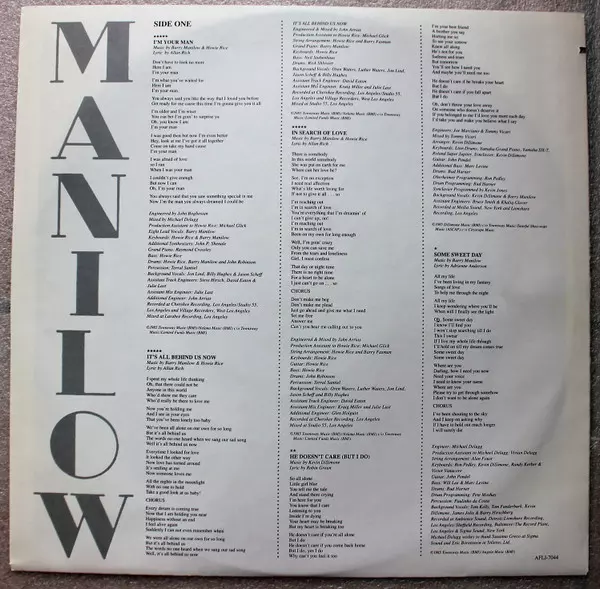 Backing Vocals Billie Hughes, Jason Scheff, Jon Lind | Drums John Robinson (2) | Engineer John Boghosian | Engineer [Additional] John Arrias | Engineer [Assistant Track] David Eaton, Steve Hirsch | Engineer [Assistant Track], Engineer [Assitant Mix] Julie Last | Grand Piano Raymond Crossley | Lyrics By Allan Rich | Mixed By Michael DeLugg | Music By, Producer, Keyboards, Bass, Drums Howie Rice | Music By, Producer, Keyboards, Lead Vocals [8], Drums Barry Manilow | Other [Production Assistant] Mike Glick | Percussion Terral Santiel | Synthesizer [Additional] John Philip Shenale