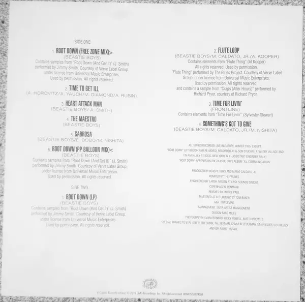 The Root Down EP from Beastie Boys was released on May 23, 1995. The first three tracks are variations of the track „Root Down”, and the remaining seven tracks were recorded „live in Europe, winter 1995”. Pressed on 180-Gram Black vinyl.