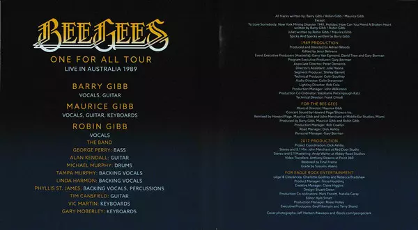 The concert film One For All Tour - Live in Australia by the Bee Gees was filmed in November 1989 at the National Tennis Centre in Melbourne, Australia, to celebrate the release of their 18th studio album "One". One For All Tour - Live in Australia is an immersive concert experience. Barry, Robin (V 2012) and Maurice Gibb (V 2003) will perform t...
