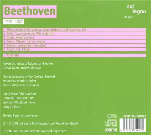 | Artiest | Ludwig van Beethoven | Orchestra Haydn Di Bolzano E Trento | Gustav Kuhn | Accademia Di Montegral | Chorus Der Tiroler Festspiele |