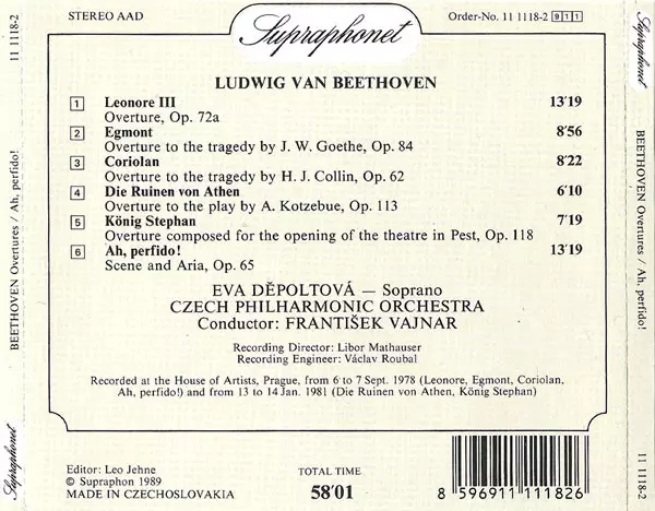 | Artiest | The Czech Philharmonic Orchestra | Ludwig van Beethoven | František Vajnar | Eva Děpoltová |