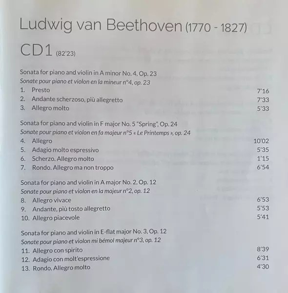 | Sonata For Piano And Violin In F Major No. 5 “Spring”, Op. 24 | ||