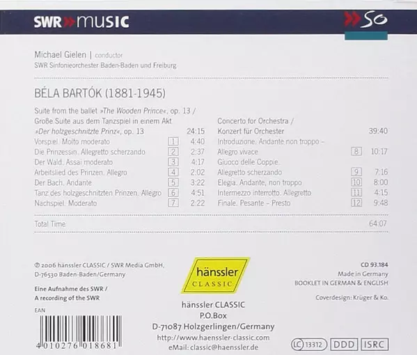 | Artiest | Béla Bartók | SWR Sinfonieorchester Baden-Baden Und Freiburg | Michael Gielen |