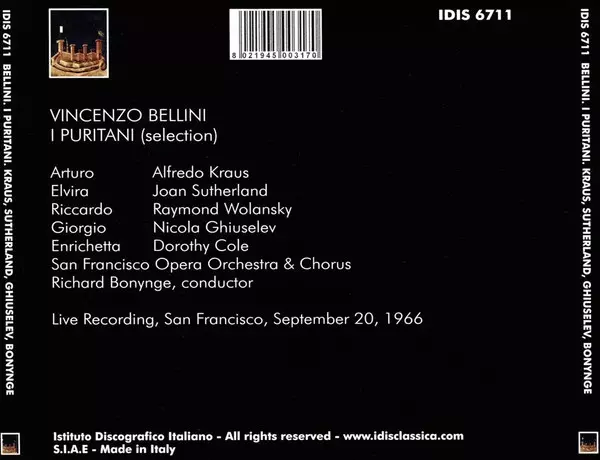 | Artiest | Nicolai Ghiaurov | Joan Sutherland | Vincenzo Bellini | Richard Bonynge | Alfredo Kraus | San Francisco Opera Orchestra | San Francisco Opera Chorus | Raymond Wolansky | Dorothy Cole |