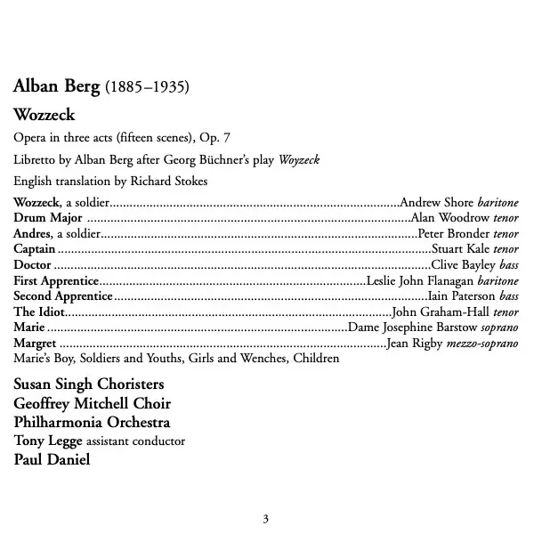 | Artiest | Philharmonia Orchestra | Alban Berg | Paul Daniel | Josephine Barstow | Andrew Shore |