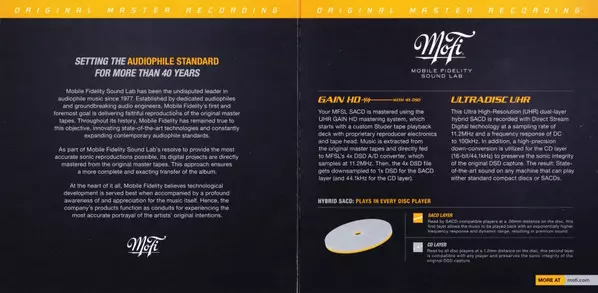 | Meer informatie | Mobile Fidelity Numbered Hybrid SACD Digisleeve — Limited (2023) |
