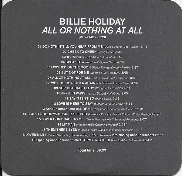 | Artiest | Billie Holiday |