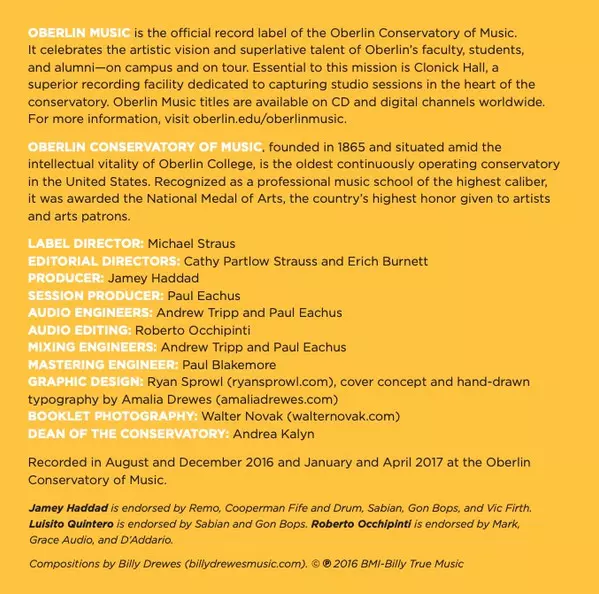 | Artiest | Billy Drewes | Leo Blanco | Jamey Haddad | Luisito Quintero | Roberto Occhipinti | Ali Paris | Salar Nader | Michael Ward-Bergeman |