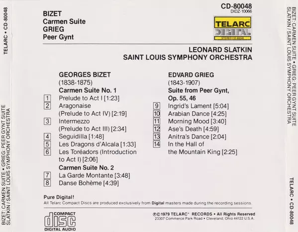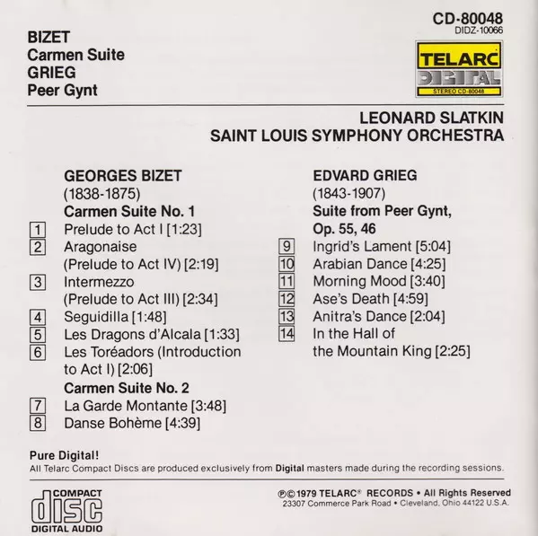| Artiest | Edvard Grieg | Georges Bizet | Saint Louis Symphony Orchestra | Leonard Slatkin |