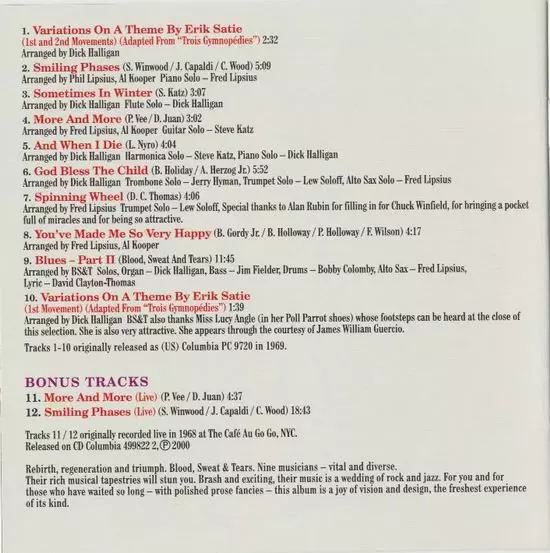 Arranged By Blood, Sweat And Tears | Soloist [Alto Sax], Alto Saxophone Fred Lipsius | Soloist [Bass], Bass Jim Fielder | Soloist [Drums], Drums Bobby Colomby | Soloist [Lyric] David Clayton-Thomas | Soloist [Organ], Organ Dick Halligan