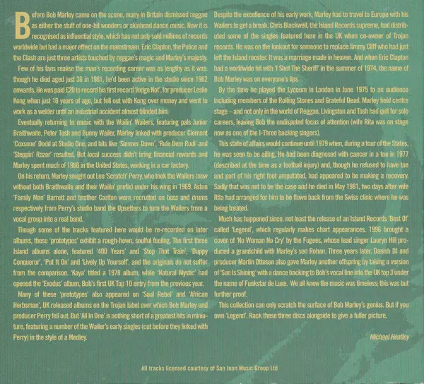 Bob Marley & The Wailers: A Legend - 50 Reggae Classics is a compilation album released in 2007. The album contains fifty classic reggae tracks from the catalogue of Bob Marley & The Wailers. The album was released on the thirtieth anniversary of Bob Marley's death.
