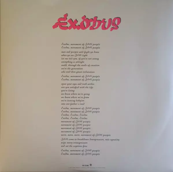 Exodus is an album by Bob Marley & The Wailers , released in 1977. It was the group's fifth album and third released on Island Records. The album was recorded in London and produced by Chris Blackwell and Bob Marley. Exodus reached number 20 on the Billboard 200 and number 15 on the UK Albums Chart. In 2001, it received a gold certificate from t...
