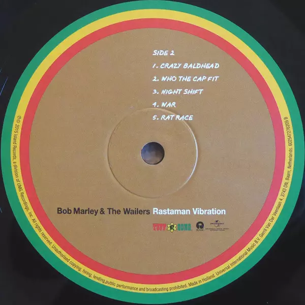 Rastaman Vibration was the fourth studio album by Bob Marley & The Wailers, released in 1976. The album was recorded in London and produced by Island Records founder Chris Blackwell. It was Marley's first album released after he was diagnosed with cancer, and contains the hit singles "Jamming", "Exodus" and "Punky Reggae Party". Rastaman Vibrati...