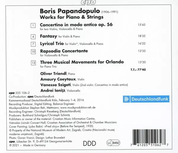 | Concertino In Modo Antico, Op. 56 For Two Violins, Violoncello & Piano | 15:43 min | |
