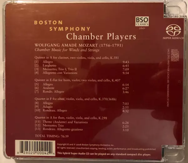 | Artiest | Wolfgang Amadeus Mozart | Boston Symphony Chamber Players |