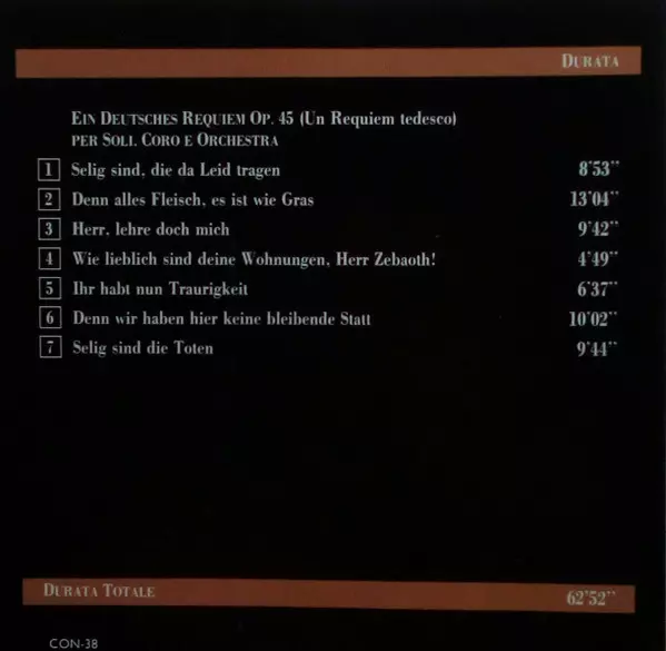 | Ein Deutsches Requiem Op. 45 Per Soli Coro E Orchestra (Un Requiem Tedesco) | 62:52 min | |