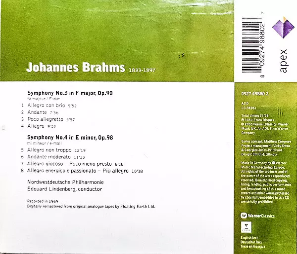 | Artiest | Johannes Brahms | Nordwestdeutsche Philharmonie | Edouard Lindenberg |