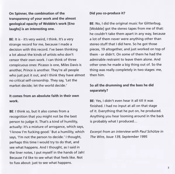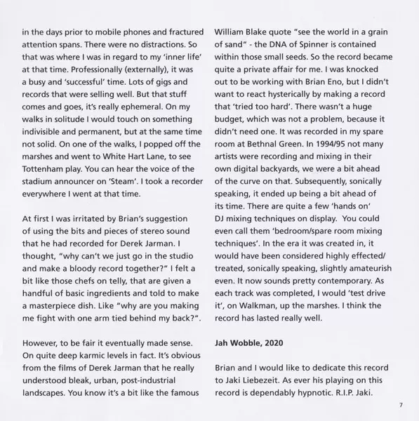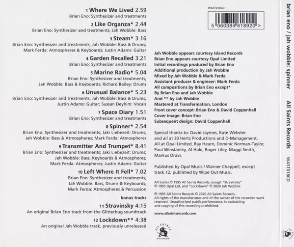 | Artiest | Brian Eno | Jah Wobble |