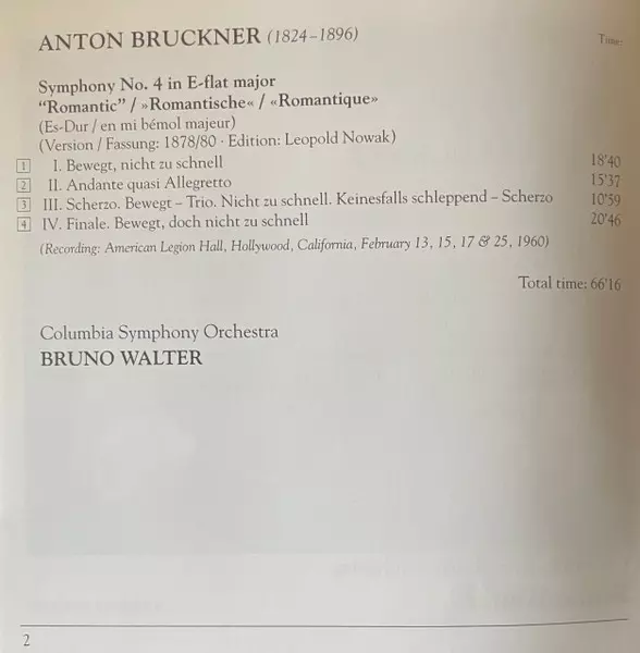 | Artiest | Anton Bruckner | Columbia Symphony Orchestra | Bruno Walter |