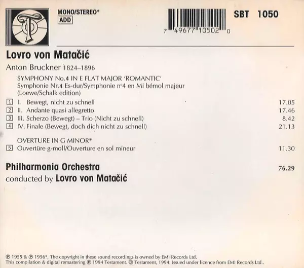 | Artiest | Philharmonia Orchestra | Anton Bruckner | Lovro Von Matacic |