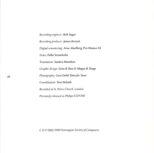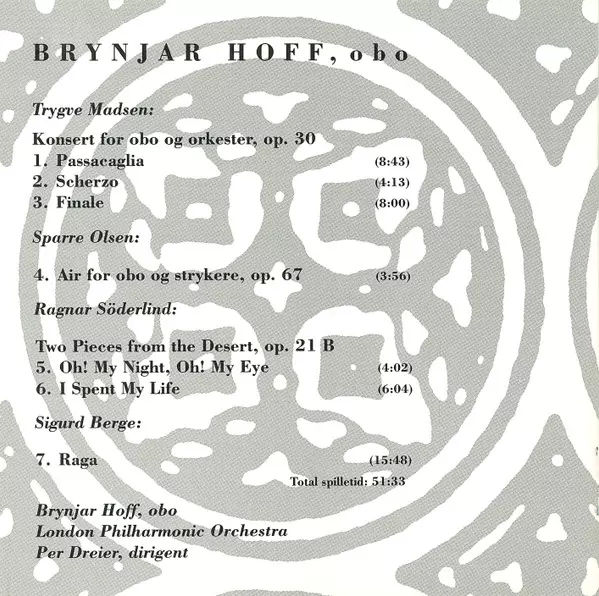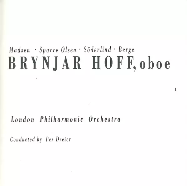 | Artiest | London Philharmonic Orchestra | Trygve Madsen | Ragnar Söderlind | Carl Gustav Sparre Olsen | Brynjar Hoff | Per Dreier | Sigurd Berge |