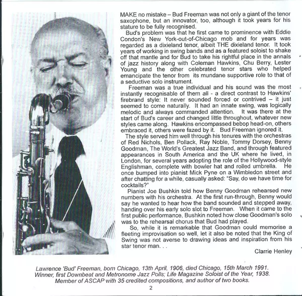 Bud Freeman: Four Classic Albums Plus versie op 2CD in remastered editie. Deze specifieke uitgave werd uitgebracht in Verenigd Koninkrijk bij uitgeverij Avid Jazz in samenwerking met Avid Entertainment op 26. februari 2013. Album valt binnen het genre Jazz, Swing en Dixieland.