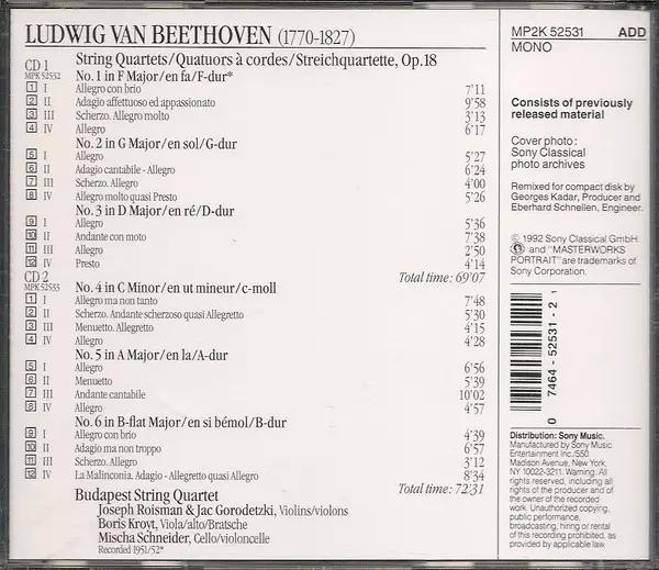 Titel | String Quartets = Quatuors A Cordes Op.18 |