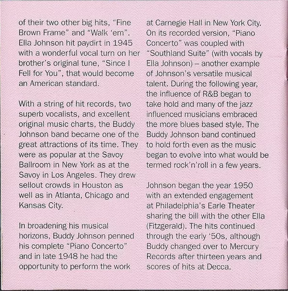 | Artiest | Ella Johnson | Buddy Johnson |